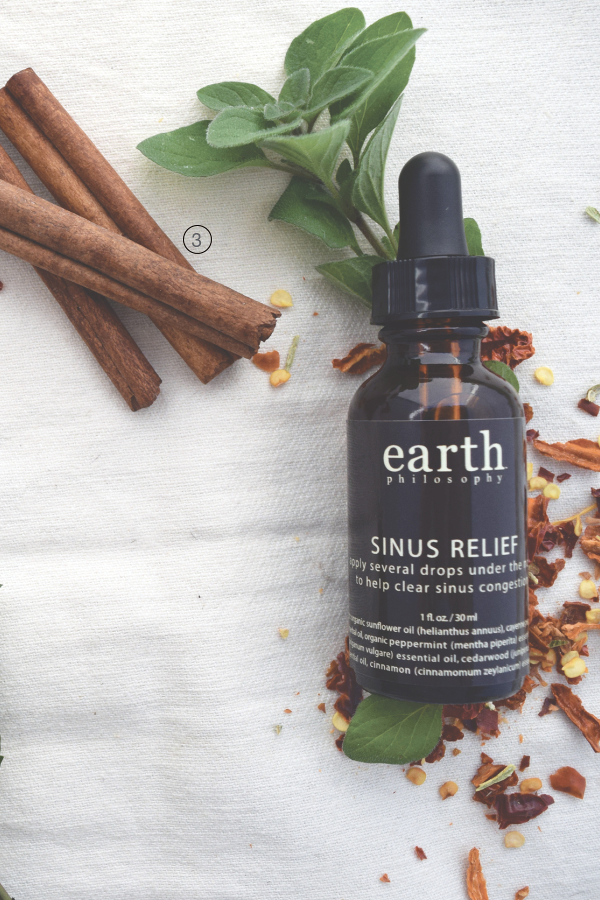 Apply several drops of this cool minty cayenne oil blend under the nose and around sinus area.
